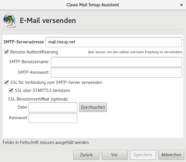 6. Wähle mail.riseup.net als “SMTP-Serveradresse”